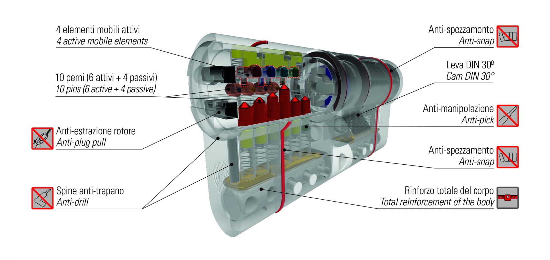 - Sistema de protección antibumping, antitaladro y antiganzúa.